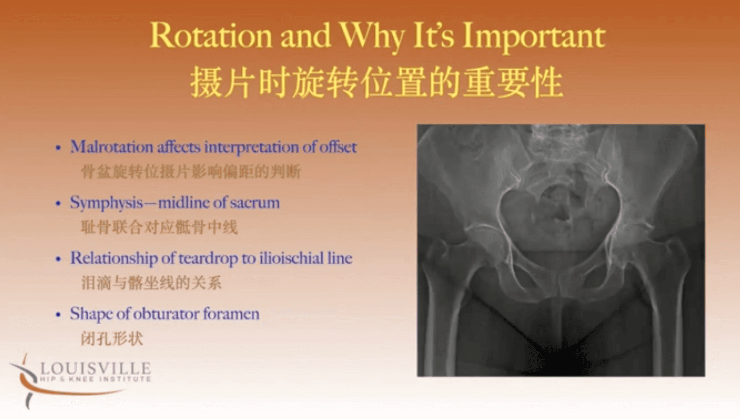 - Check for rotation – Check that the sacrum and symphysis pubis line up, compare the symmetry of foramen and check the relationship between teardrops and iliioischial line - are they equidistant on both sides?