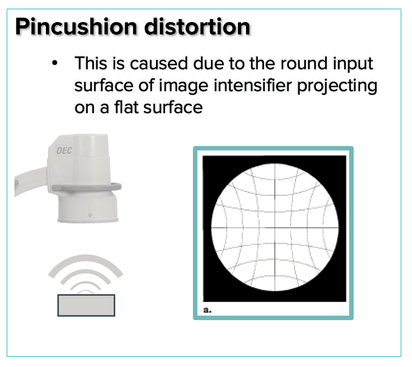 Note that all Image Intensifiers have distortion. Images taken with flat panel C-arms do not have distortion.